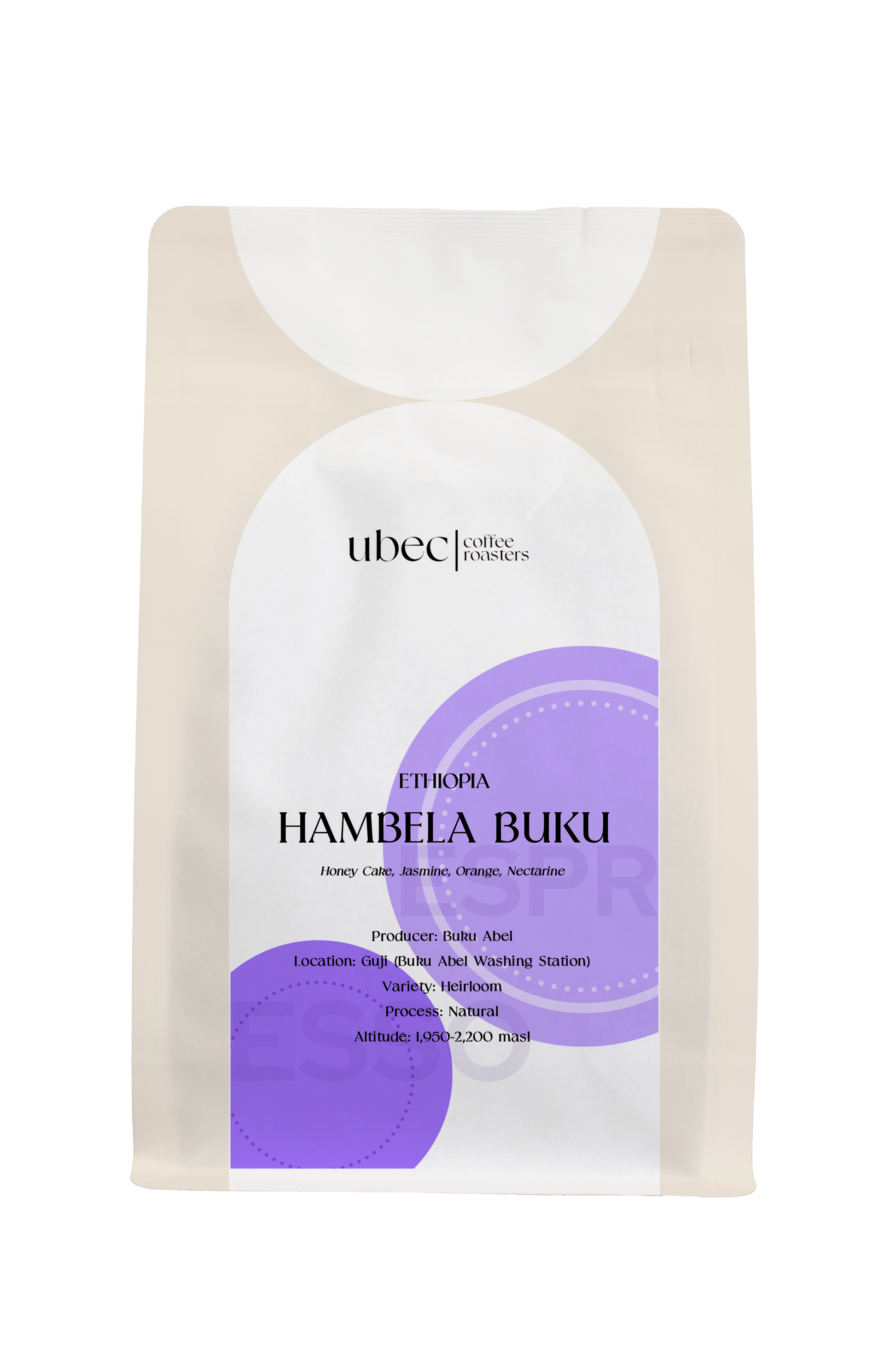 Nestled in the highlands of Guji, southern Ethiopia, Hambela Buku is a small but exceptional coffee-producing area within the famed Buku Abel region. Grown by a collection of local farmers at elevations ranging from 1,950 to 2,200 MASL, this coffee benefits from cool mountain air, red loamy soils, and abundant rainfall—perfect conditions for slow cherry maturation and complex flavor development.